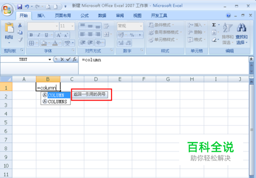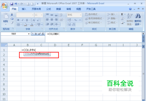 column函数的基本语法/公式:=COLUMN([reference]),在单元格输入函数时就会显示(如图);