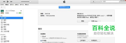 将ipad用电源线连上电脑,可以看到这款软件设置了ipad连接即打开的设置,可以在软件界面看到相应的ipad信息。