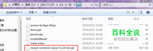 第一步 搜狗搜索 ”mysql-connector-java-5.1.24-bin.jar”并下载.把这mysql-connector-java-5.1.24-bin.jar 文件放到C:\jdk1.7.0_67\jre\lib\ext(这里是我的jdk的目录中).