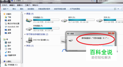 有时U盘插入电脑显示‘请插入磁盘’,下面介绍怎么解决(如图);