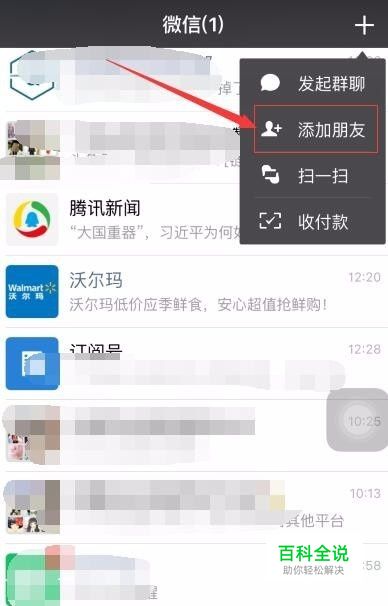 首先,打开微信,开始建立一个只有自己一个人在的微信群,点击右上角的加号,出现几个选项,选择添加好友。