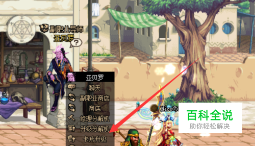 第一个,我们要知晓光卢克卡片升级的规则,那么我们就要知道整个卡片的合成规则。 卡牌合成的地点是在亚贝罗的旁边,点击卡片升级,就可以进入卡片升级的界面。