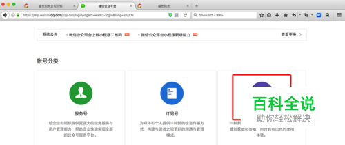 浏览器打开微信公众平台,在页面下面有“小程序”的按钮,那个企业号已经被挤到下面了(企业号貌似前途不妙耶!)