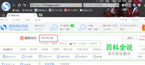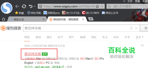 首先,打开电脑内的了浏览器,并在浏览器的输入框中输入“微信网页版”五个字,然后点击后面的搜索。