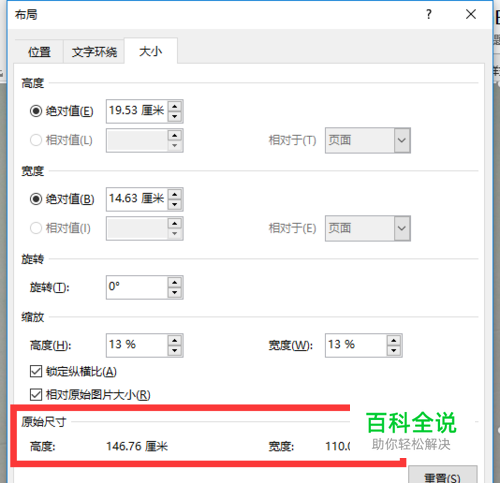 以我上面举例用的图片为例。 通过在word中查看可知,尺寸——高度是146.76厘米,宽度是110.07厘米; 通过在详细信息中查看可知,像素——高度4160像素,宽度3120像素; dpi——垂直是72dpi,水平是72dpi(一般水平和垂直都是一样的)。 在网站中,输入宽度像素3120,以及水平方向的DPI是72,计算后得到尺寸是110.1厘米,即照片的宽度是110.1厘米。和我们在word上查看的一致,因此,计算正确。