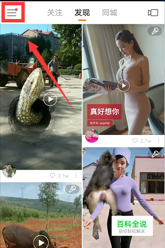 首先打开快手APP,点击左上角三条横线按钮。