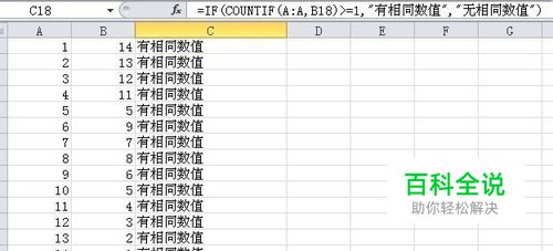 如果是两列数据进行对比(即对2列所有的数据进行对比): 在C1输入=IF(COUNTIF(A:A,B1)>=1,"有相同数值","无相同数值") 然後下拉即可查找A列与B列数值的不一样数据。