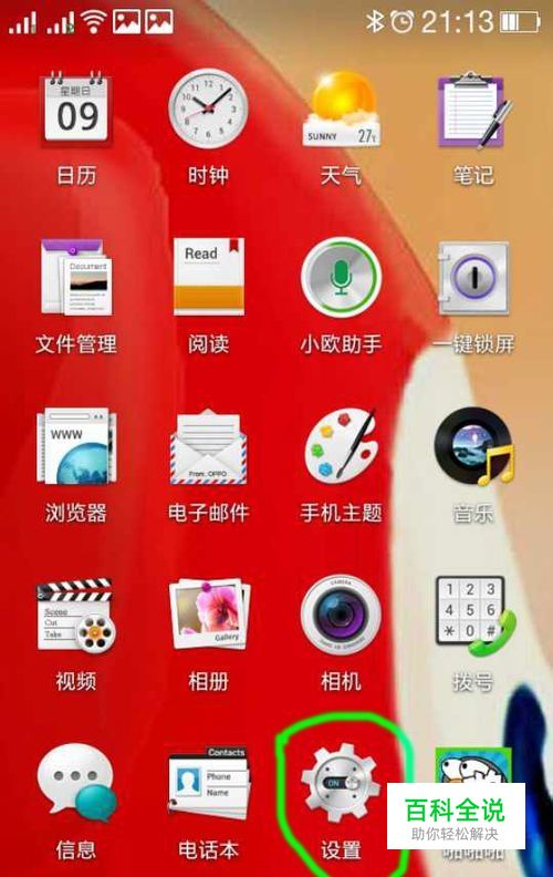 第二,打开手机,找到手机的“设置” 绿圈所示