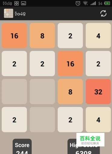 然后操作方法是, 滑动手机屏幕上下左右,然后屏幕所有数字方块会往指定方向合拢! 两个数字相同就会相加!等于更大的数字!