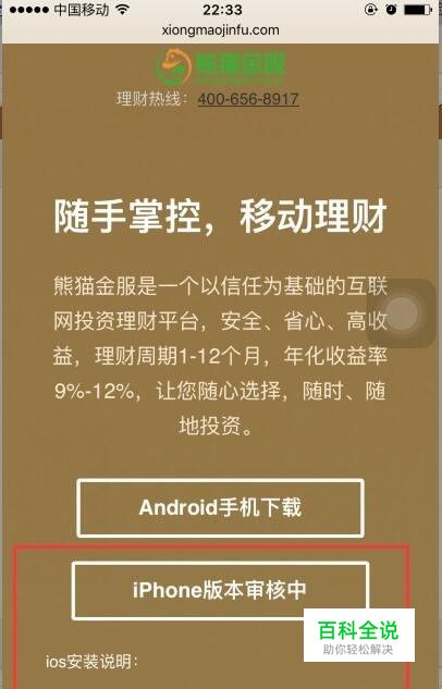 通过此公司客服或销售人员给的链接,点击打开后如下图所示,选择“iPhone 手机下载”。 ps:千万别选择“android手机下载”,因为此教程只针对iPhone手机有效。