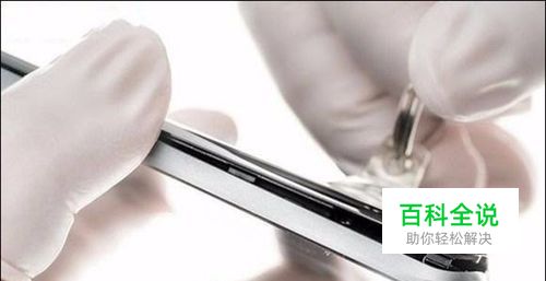 第六步:拆卸电池。将底部的喇叭等小部件拆卸下来之后,接下来就可以拆卸电池了,具体方法步骤如下。首先用手拉起左侧易拉胶手柄,如图。