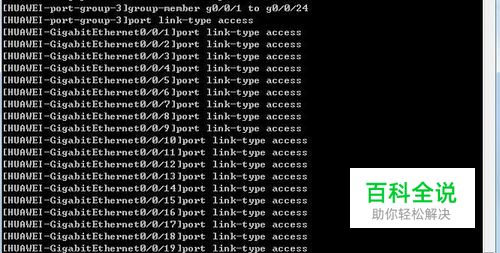 多个端口同时配置的命令 port-group 3 /建立群组3 group-member g0/0/1 to g0/0/24 /将1到24口加入群组 port link-type access /将群组端口全部设置成access口
