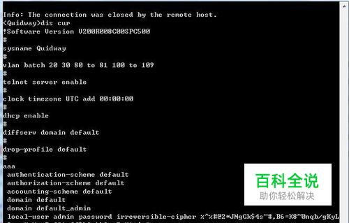 查看配置的命令display current-configuration 直接输入简化的命令dis cur