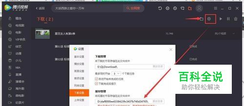 在下载页面的右侧位置,如图“设置”位置,点击打开,将视频存储的位置--复制(后面有大用,切勿丢字母哦)