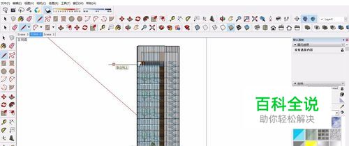 首先,我们使用Sketchup开启我们需要进行剖切的模型文件, 我们首先使用铅笔工具,在我们需要剖切的位置上绘制一条直线。