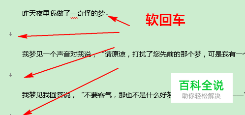 软回车:使用换行符对文档进行换行留下的标记,在 Word 中的符号标记为向下箭头。注意,在标准格式中,软回车并不是一个真正意义上的段落,它只是视觉上的一个段落。