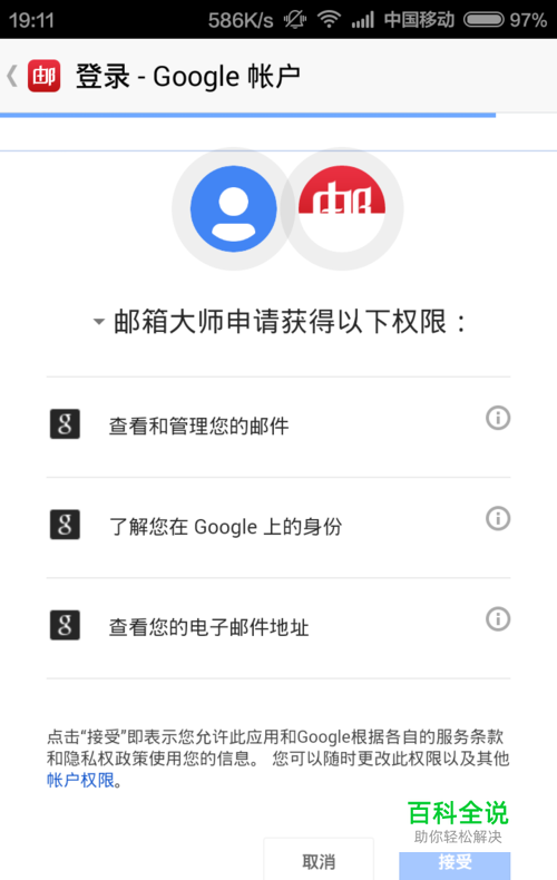 接下来,我们就成功的打开了授权页面,点击授权按钮,授权邮箱大师应用访问Gmail邮箱。