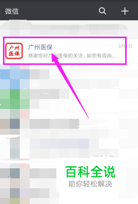 打开微信,搜索公众号“广州医保”,然后关注这个公众号。