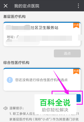 点击【选择】。选择后,页面会出现【选点成功】的提示。这样接下来去定点医院看病时就能报销了。