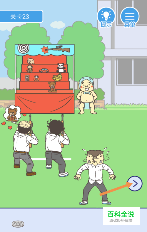 第23关点击向右箭头到右边去。
