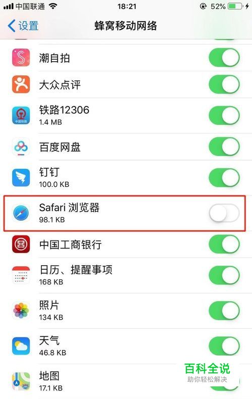 如果在数据流量下无法打开网页,查看【设置】-【蜂窝移动网络】里是否关闭了Safari浏览器