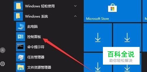 在Windows10系统桌面,依次点击“开始/Windows系统/控制面板”菜单项。