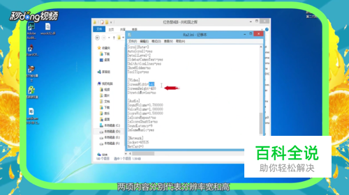 打开后找到“ScreenWidth”和“ScreenHeight”,两项内容分别代表分辨率宽和高,修改成电脑显示器的分辨率,修改后保存。