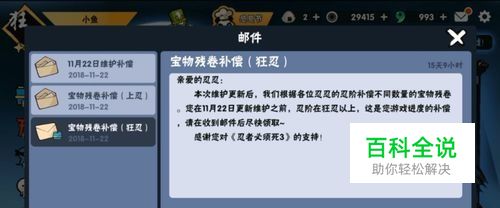 忍者必须死3中有很多地方都是有机会获得宝物残卷的,比如,11月22号的宝物残卷补偿(上忍),系统补偿给用户没人10个S级宝物残卷和10个SS级宝物残卷