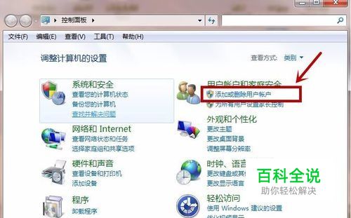 首先我们在电脑里打开控制面板,在里面点击当前用户和家庭安全里的添加或删除用户账户,如图所示。