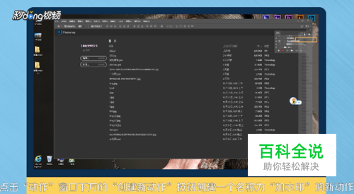 打开PS,点“窗口”,在下拉动作条中点击开启“动作”功能,点击“动作”窗口下方的“创建新动作”按钮创建一个名称为“加水印”的新动作。