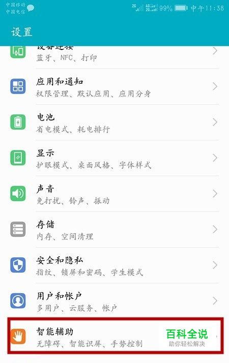 打开“设置”页面,在里边找到“智能辅助”选项,此选项是在荣耀更新完安卓8.0之后的位置。