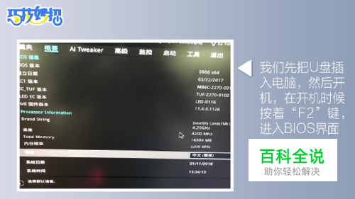 我们先把U盘插入电脑,然后开机,在开机时候按着“F2”键,进入BIOS界面。
