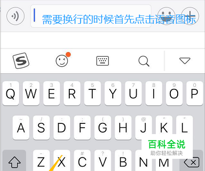 微信APP聊天时如何换行? ①由于不同的输入法功能不一样,所以小编说的是手机系统自带的输入法,如果是之前的版本,那么在需要换行的时候,我们点击键盘左下角的语音输入图标,然后用语音说出"下一行"、"换行"等相关词语即可;