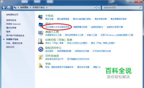 在显示下面选择< 放大或缩小文本和其他项目>选项;