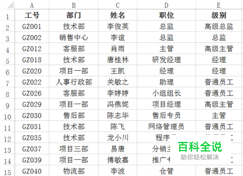 如图,为我们的现有数据,假定是现有的员工情况,我们需要找出哪些工号的资料是缺少。如果一个一个地数将会很浪费时间,而且还可能会数漏。
