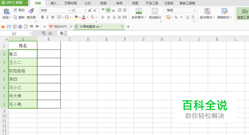 选中表格中“姓名”这一列单元格;