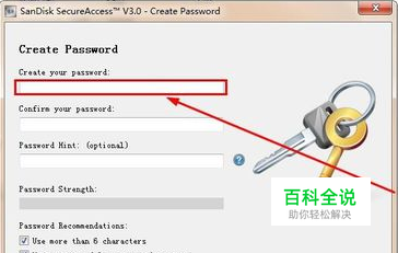 6. 如果您需要保护您的数据,点击 密码保护加密我的数据 复选框,并设定密码。 7. 选择 自动 或 自定义 备份。 8. 点击并选择 SanDisk Backup Manager 将被安装到您的计算机上以确保自动并持续备份 复选框,以便您每次插入Cruzer Ultra Backup闪存盘到您的计算机时 SanDisk Backup 会自动运行。点击下一步。