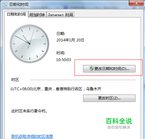 然后,单击“更改日期和时间设置”,将弹出“日期和时间”对话框,如下图所示: