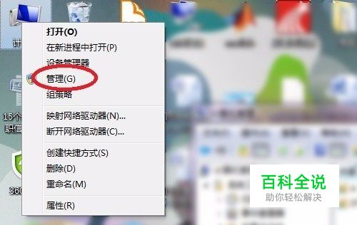 在桌面上右键单击【我 的电脑】图标,在出现的快捷键中选择【 管理】