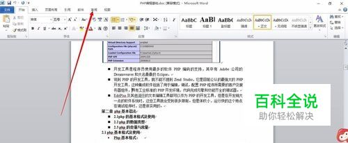 打开一个有文字内容的word文档,点击word文档工能栏中的审阅选项卡。