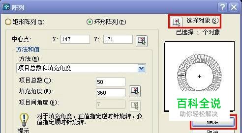 如下图,输入 项目总数及 旋转角度,最后点击“ 选择对象”;