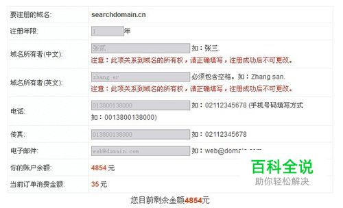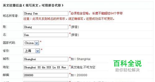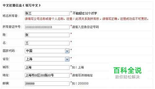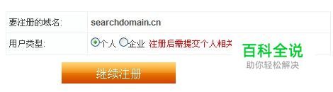 2、点击"继续注册"按钮,进入资料填写页面。注意事项:域名所有者代表域名所有权,请千万别填错。