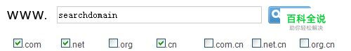 2、输入您需要查询的域名如:searchdomain,那么请输入searchdomain,然后选择后缀。