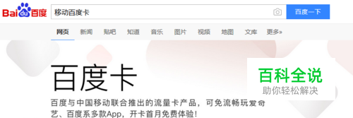 首先,我们百度搜索移动百度卡,即可看到有如图所示进入百度卡官网,我们点击它