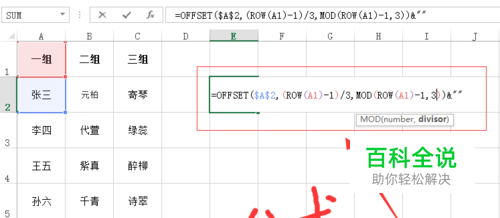 【方法一:公式】 E2单元格输入以下公式 =OFFSET($A$2,(ROW(A1)-1)/3,MOD(ROW(A1)-1,3))&""