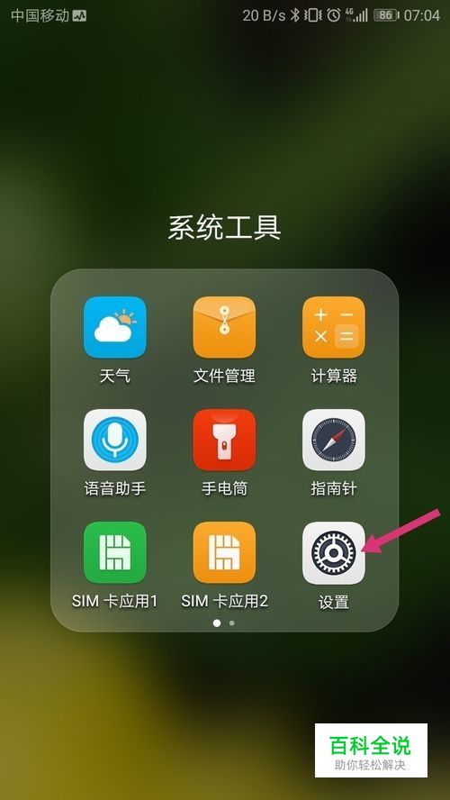 桌面“系统工具”文件夹,打开,点击“设置”进入设置界面