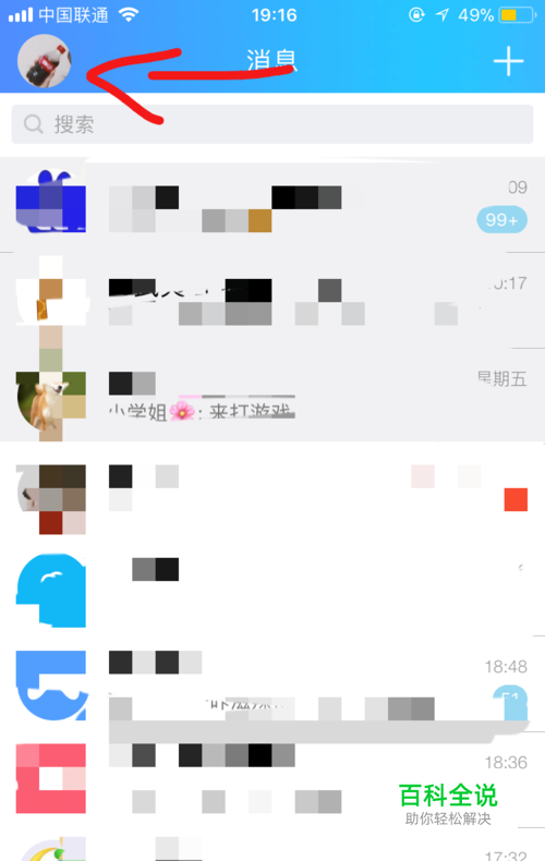 首先,进入手机QQ界面后,点击左上角任务头像的图标,可以进入到下一步操作的QQ界面