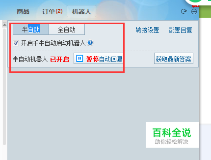 点击千牛右侧设置对话框中的机器人