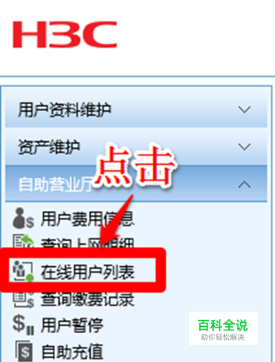 在“自助用户列表”下还会出现一个子列表,找到“在线用户列表”之后再次点击。