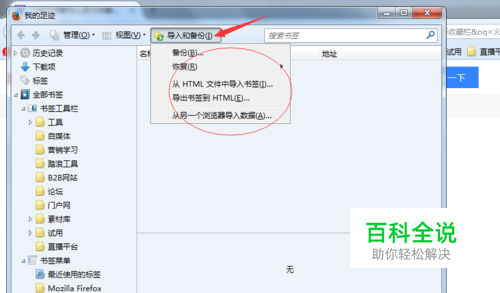 从其他地方导入书签,另一个浏览器或者本地HTML文件中,也可以备份和导出;